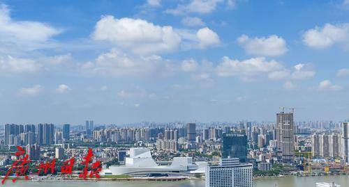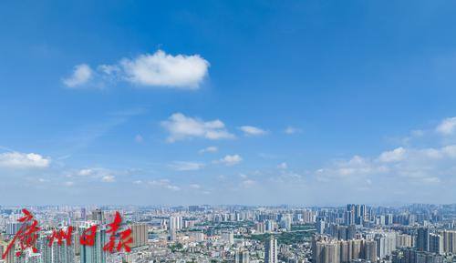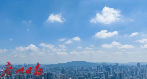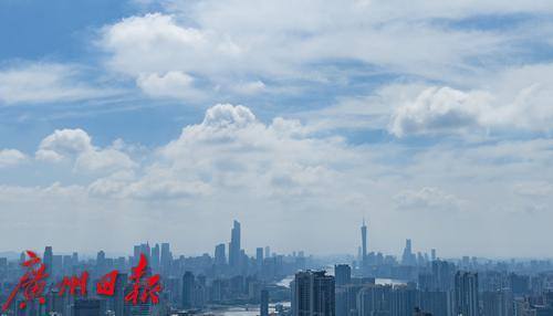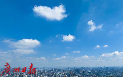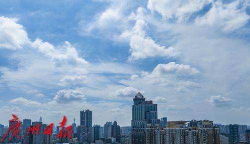 久违的蓝天白云美景出现在广州城区天空。
