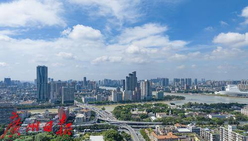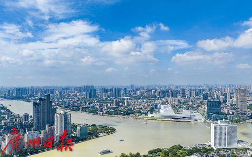 蓝天白云下的珠江两岸美景。