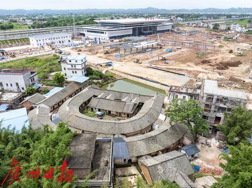 梅龙高铁兴宁南站旁边就有新岭村客家围屋。