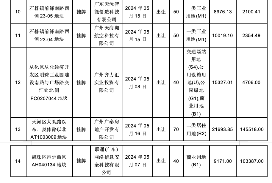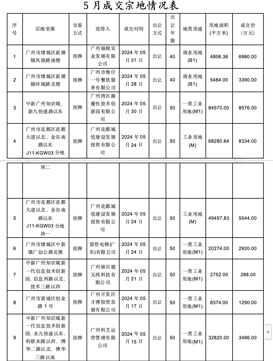 2024年5月27日,广州市规划和自然资源局增城区分局以挂牌方式出让1宗地的国有建设用地使用权,宗地位于广州市增城区新塘镇荔新公路南侧,地块编号为