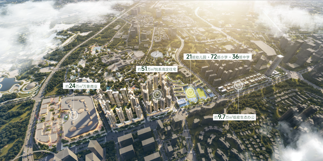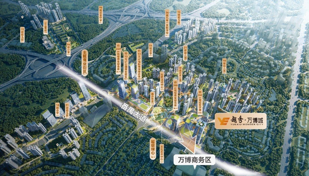 越秀·万博城项目总投资近500亿,总建面超500万方,将为广州再造一座中轴封面,并通过以人为中心的城市设计,打造先进宜居的“广州版”未来城市。在城市公共配套建设方面,越秀·万博城更将为万博片区带来质的飞跃。规划约116万方的商业配套,包含5所幼儿园、4所小学、2所初中、1所高中在内的12年优质菁英教育,完善长隆万博板块的配套。同时,还将为万博带来文化艺术中心、青少年宫、社区活动中心和中央艺术公园等“三馆一园”的人文新地标。