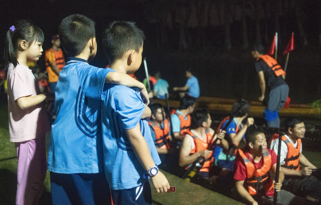 夜训队伍中有几位年纪十三四岁的少年十分惹眼。他们分别是梁焌熙、梁君昊、卢正昊、梁俊轩、胡家辉、梁天赐等。“这么黑是不是扒龙船晒的?”“当然啦,平时晚上要训,周末白天还要训。”梁焌熙说。“打篮球好玩,还是扒龙船好玩?”“当然是扒龙船好玩!”几名少年齐声答道。