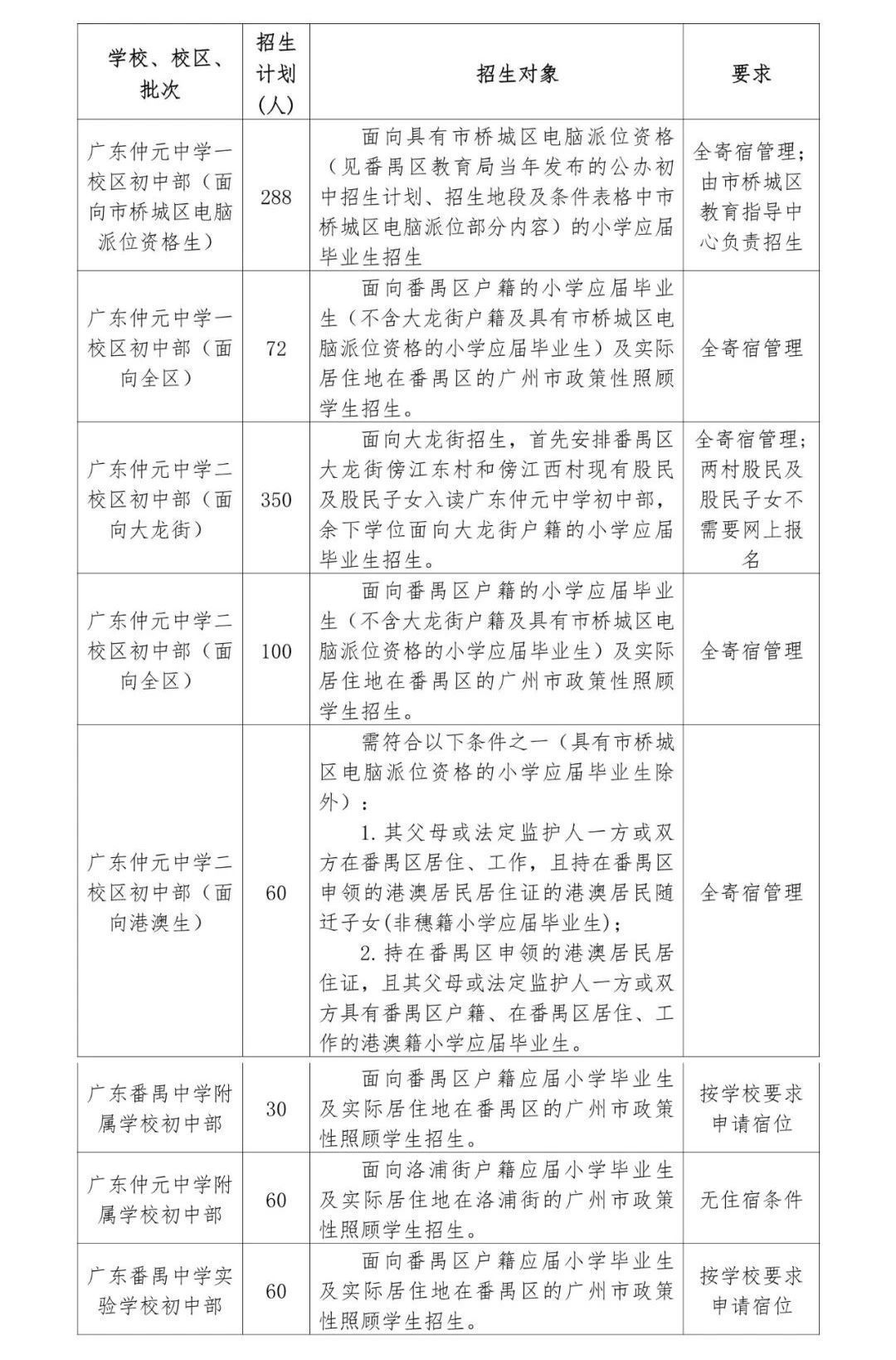 6月5日,广州市番禺区教育局发布区属初中面向全区(或属地镇街)招生简章,具体内容如下: