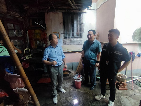 越秀区人大代表杨文新、陈洁萍、何文力对此高度重视,马上到现场了解情况。代表们发现建设五马路45号之五的承重墙体出现粉化、木檩条出现断裂和缺失现象,同时了解到业主林女士年迈、没有稳定收入,去年生病康复后,家庭经济状况更是堪忧。