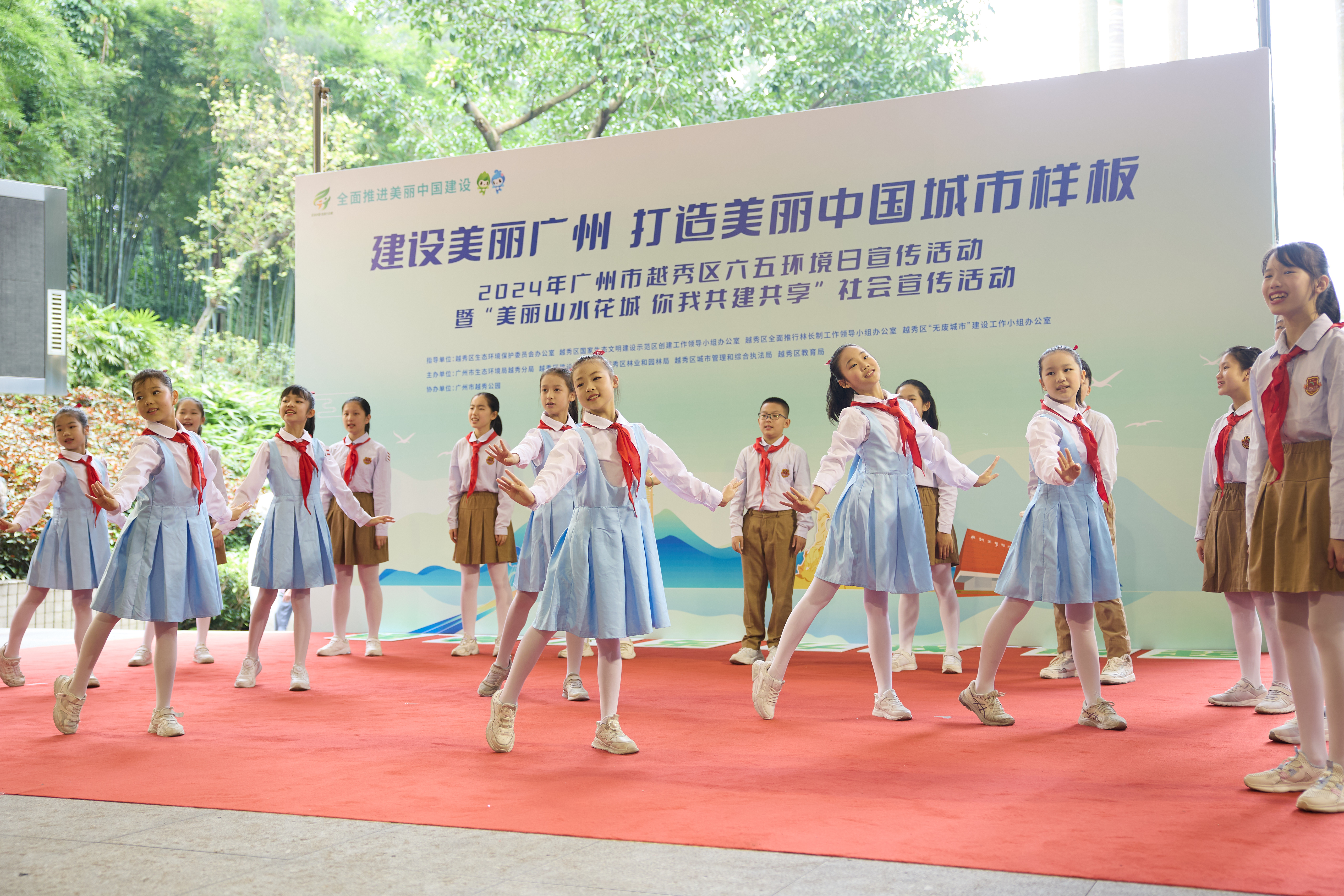 “种下一棵树,送给未来的礼物,绿美广东每一步,都算树……”活动上,越秀区小北路小学的同学们用稚嫩的童声唱响原创绿美主题曲《每一步,都算树》。