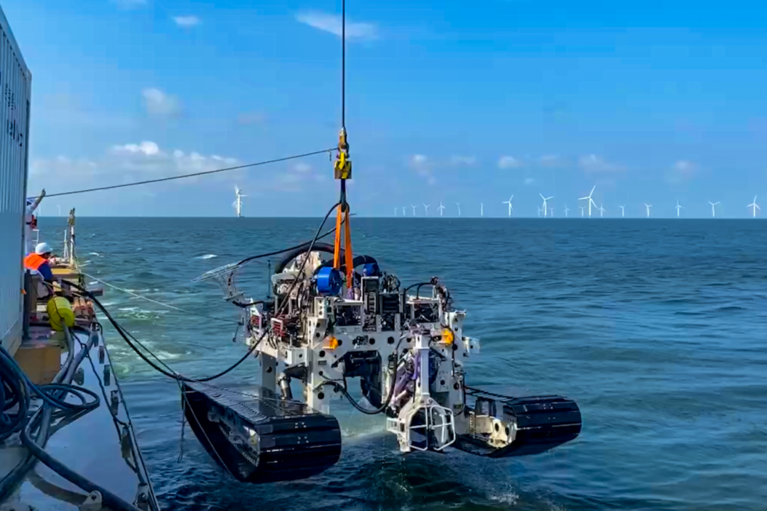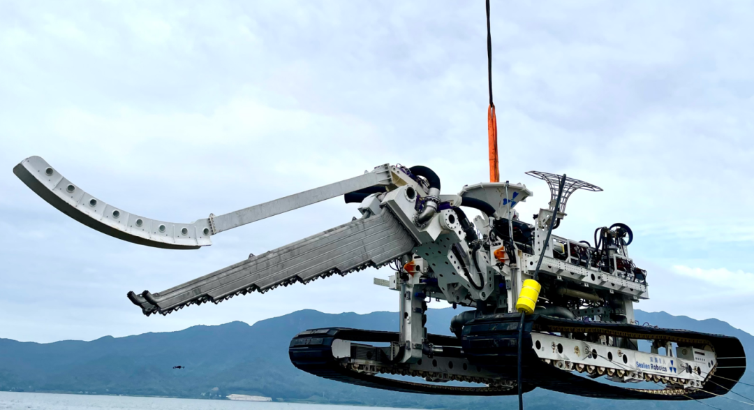 日前,在湛江市徐闻海域某风场,由南沙科技企业深海智人(广州)技术有限公司(下称“深海智人”)开发落地的首台全国产化、亚洲最大功率履带自行进式海底管缆埋设机器人,潜入深海作业,顺利完成首次海上风电后埋缆施工作业。