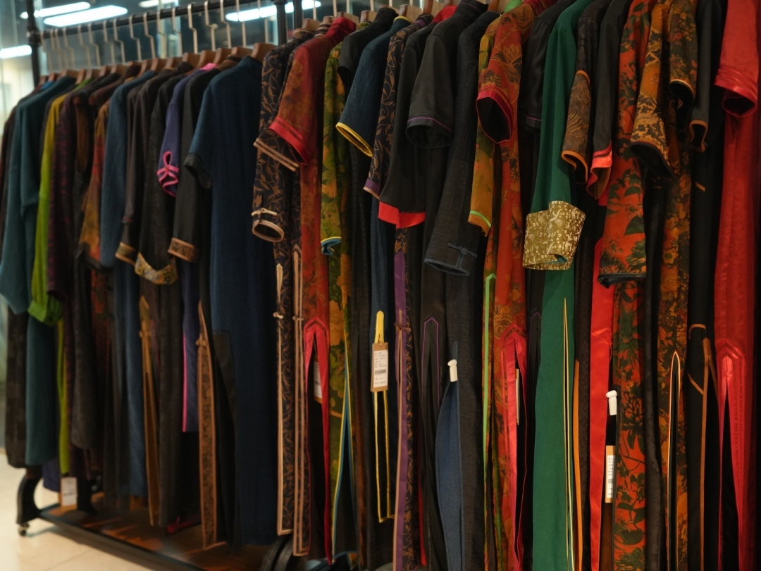 欧阳凤婷仍然记得再次见到香云纱时的场景。眼前的香云纱成衣已经不像幼时所见只有单调的暗色,染整工艺的进步让其有了更丰富的色彩,尤其当顺德的香云纱布料,经过深圳设计师的创意后,款式更是新颖多样。“当时就被震住了,她们好像在向我招手一样,我喜欢她,她也同样‘喜欢’我。”