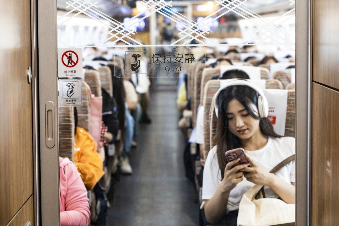 为营造文明有序、温馨舒适的旅行环境,铁路部门自2020年12月起在京沪、成渝高铁试点“静音车厢”服务,逐步扩展至京广、郑渝、京哈、沪昆、西成高铁,深受广大旅客青睐。为进一步提升高铁运营服务品质,优化旅客出行体验,铁路部门统筹运用动车组资源,持续拓展“静音车厢”服务覆盖范围,在京广、沪昆、贵南等高铁线路上新增20列复兴号动车组列车提供这一服务,包括4列内地与香港间开行的跨境高铁列车,其中就包括G79次,由北京西站开出,途经石家庄、郑州东、武汉、长沙南、广州南、深圳北站后,终至香港西九龙站。