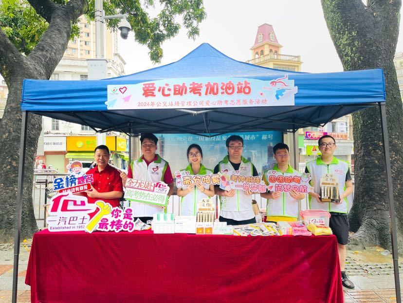 据悉,6月7日至9日高考期间,交通站场中心下属公交站场管理公司动员员工,在东山(署前路)、大坦沙、地铁西村站、广州火车东站、天平架、天河客运站等六个临近考场的公交站场、重点枢纽公交站场同步开展“激扬青春 筑梦起航”爱心助考志愿服务活动。