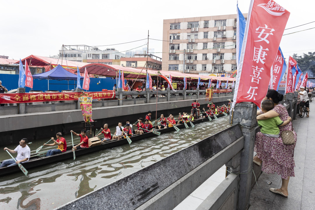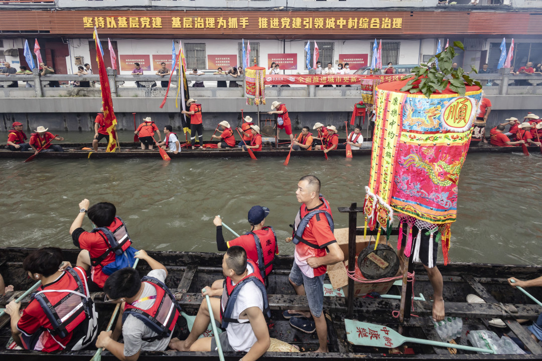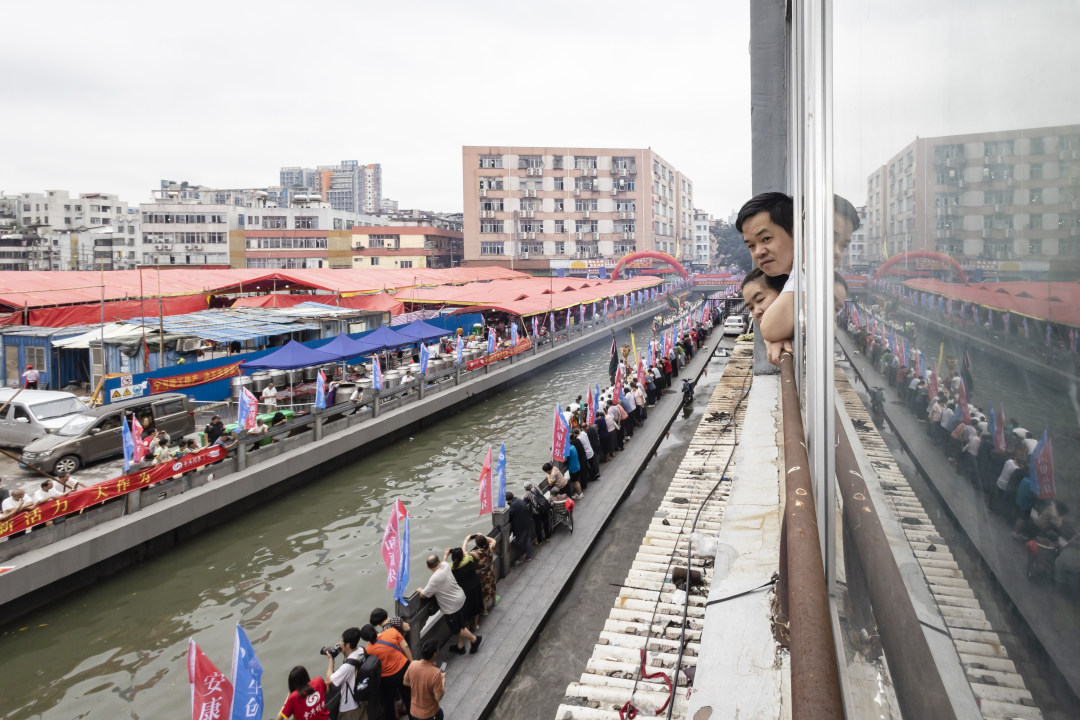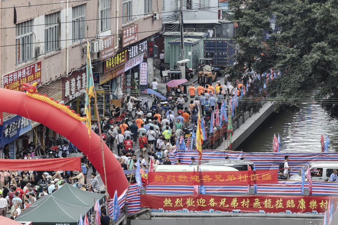 康乐桥头人头攒动,吃罢龙船饭的村民簇拥着走出现场。