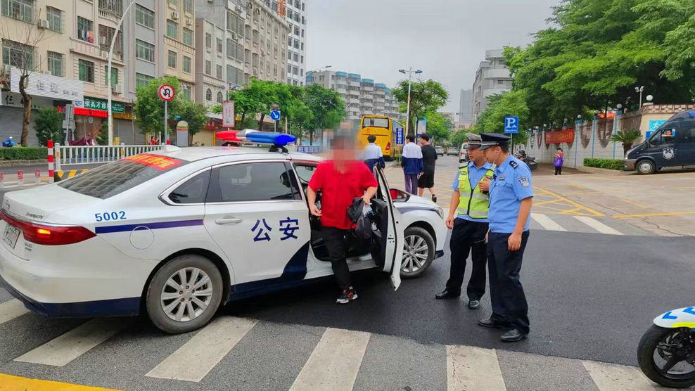 同日上午,新兴县公安局执勤民警快速护送一名错过护考大巴和一名坐大巴会晕车的考生到达新兴县第一中学的考点顺利参加考试。