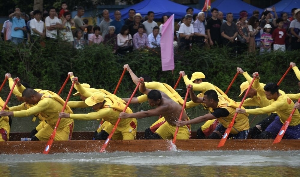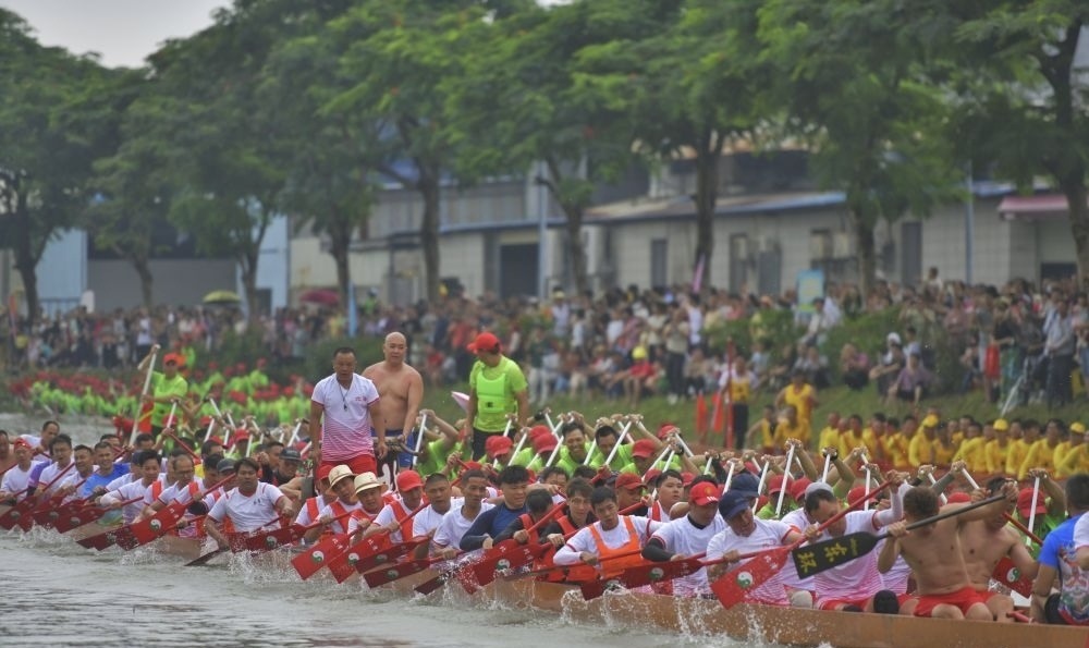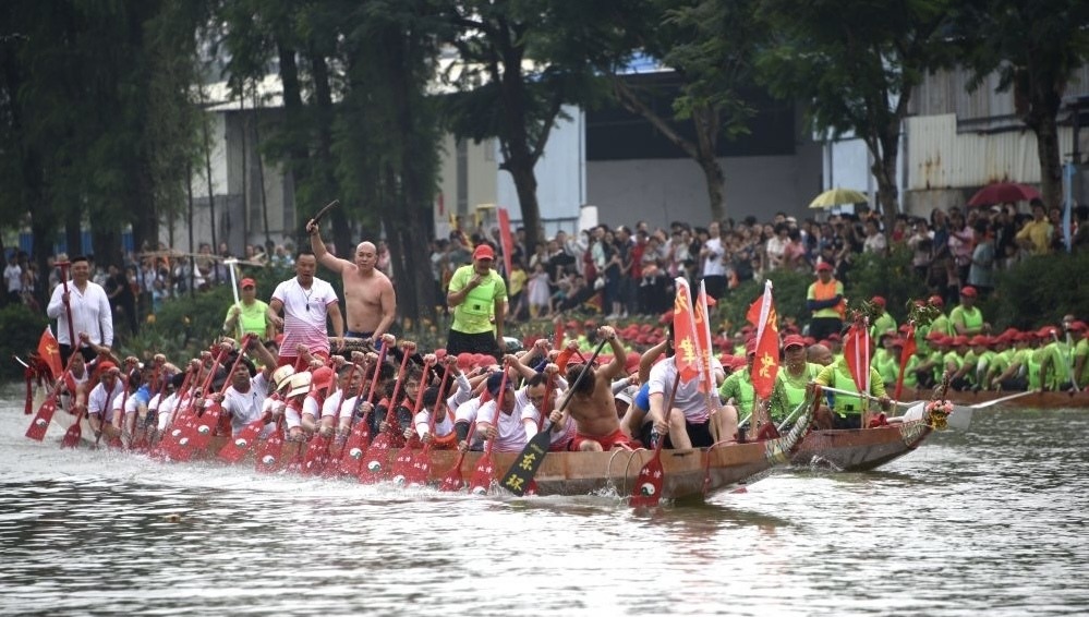 6月8日,农历五月初三,广州市番禺区大龙街新桥村热闹非凡。来自大龙街、市桥街、沙头街10个村的20多艘龙舟,齐聚新桥河涌,趁“新桥景”。河面上,龙舟竞渡,水花飞溅,热闹非凡;河涌边,人潮涌动,欢声笑语,共庆佳节。
