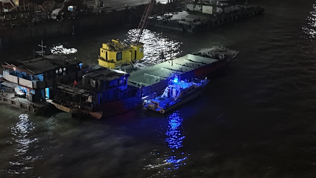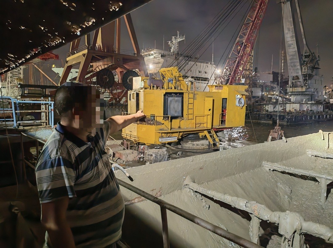经执法员登临检查,现场船舶人员无法提供相关证明及手续,也未开启AIS。随即,执法员以未取得废弃物海洋倾倒许可证向海洋倾倒废弃物立案调查,责令两船在调查期间停止施工作业,并扣押涉案船舶。