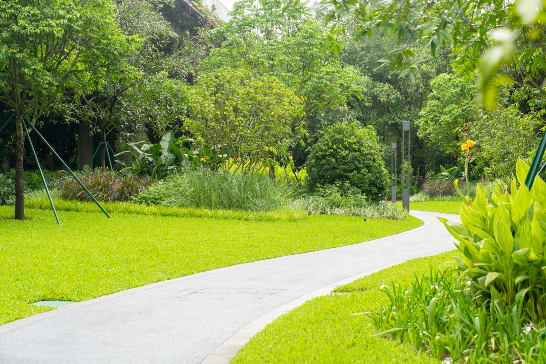“香遇苑”改造空间面积约5800平方米,在景观设计方面,利用原有的绿化基础因地制宜进行建园造景,同时梳理香雪公园与桥下空间边界植物空间,清理中下层灌木地被,透出园内景观,实现立交公园与香雪公园的视线连接和景观相融。通过提升和空间优化后,融合了桥下空间与公园之间的边界,桥下空间同香雪公园的绿意盎然、香雪烂漫及玉岩书院山水环绕、林静的环境协调统一、相互映衬、浑然一体,共同组成了一个大公园。