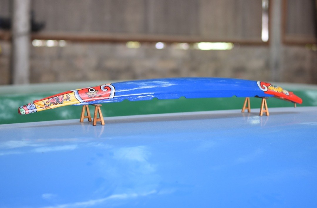 最令吕振邦自豪的是,一直以来,他们坚持古法造船,即用墨斗、刻刀等祖辈传下来的工具,纯手工打造龙舟。他介绍说,龙舟制作工序繁琐,从选材、量尺寸、钻木孔、拼装、油漆上彩等需要经过几十道工序,“这些都是纯手工的,制作整艘船大概要25天,一艘龙舟大概要打1500个钉子,使得龙舟更加牢固”。