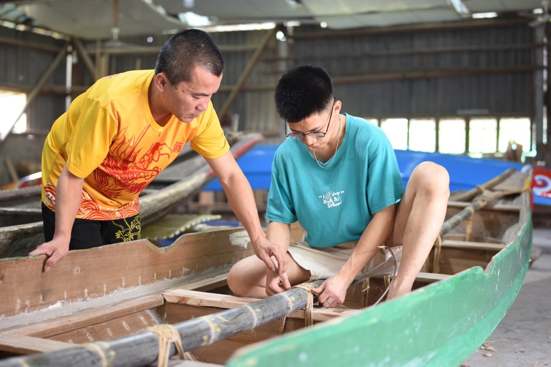 端午节前后,是汕头市澄海区昌利造船厂一年中最繁忙的时候。在昌利造船厂内,“00后”小伙吕铭正忙着协助父亲吕振邦,为一艘送来打磨翻新的龙舟作最后“体检”。