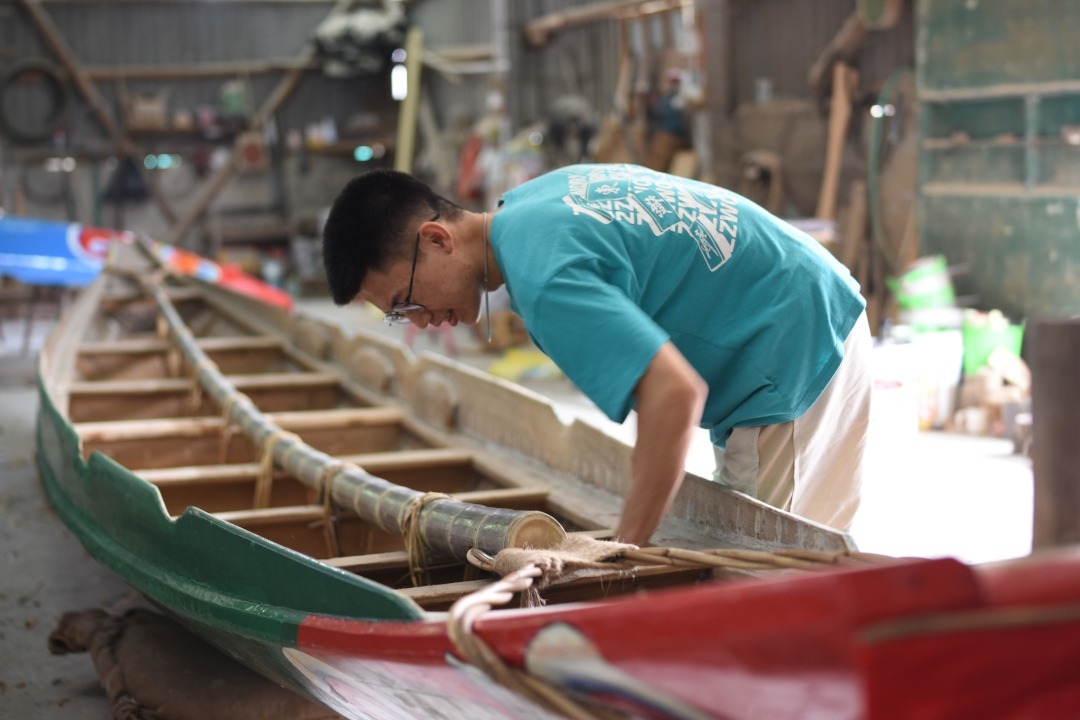 每年淡季之时,吕振邦便会尝试制作龙舟的文创产品,以1:10的比例制作可供摆饰的微缩型小龙舟。“小龙舟的用材和做法都与大龙舟一样,做起来比大龙舟更费神,一条大约要耗时半个月。”吕振邦说,他制作的小龙舟文创作品很受年轻人欢迎,“这也是一种传承弘扬的新方法”。