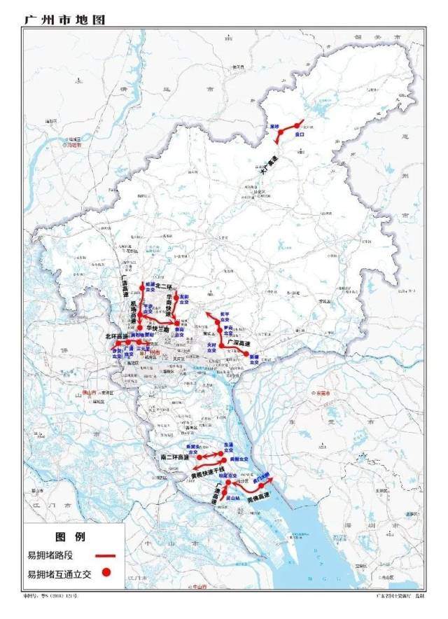 易出现拥堵缓行的路段包括华南快速路(太和立交—春岗立交段)、机场高速(蚌湖立交—黄石收费站)、北环高速(沙贝立交—三元里段)、华快三期(平沙立交—春岗立交桥)、大广高速(良口—米埗段)、北二环高速(火村立交—长平立交段)、广澳高速(灵山站—坦尾立交)、黄榄快速干线(黄阁立交路段)、广深高速(新塘—萝岗立交段)、莞佛高速(坦尾互通—虎门大桥段)、南二环高速(鱼窝头—东涌互通段)等。