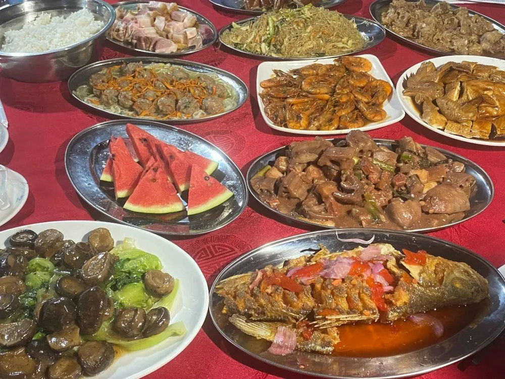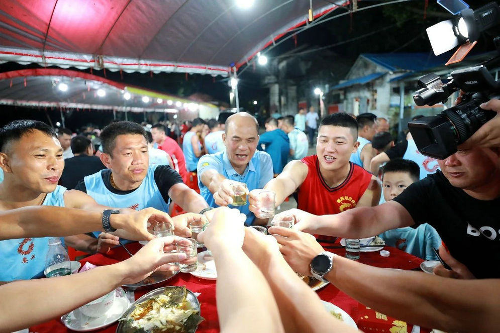 烧猪、蒸鱼、红烧猪手、酱爆大虾等象征着团圆与吉祥的菜式摆满了餐桌,香气四溢。获胜归来的扒丁们手持奖杯、奖牌,怀抱锦旗,在村民的簇拥下陆续入席。