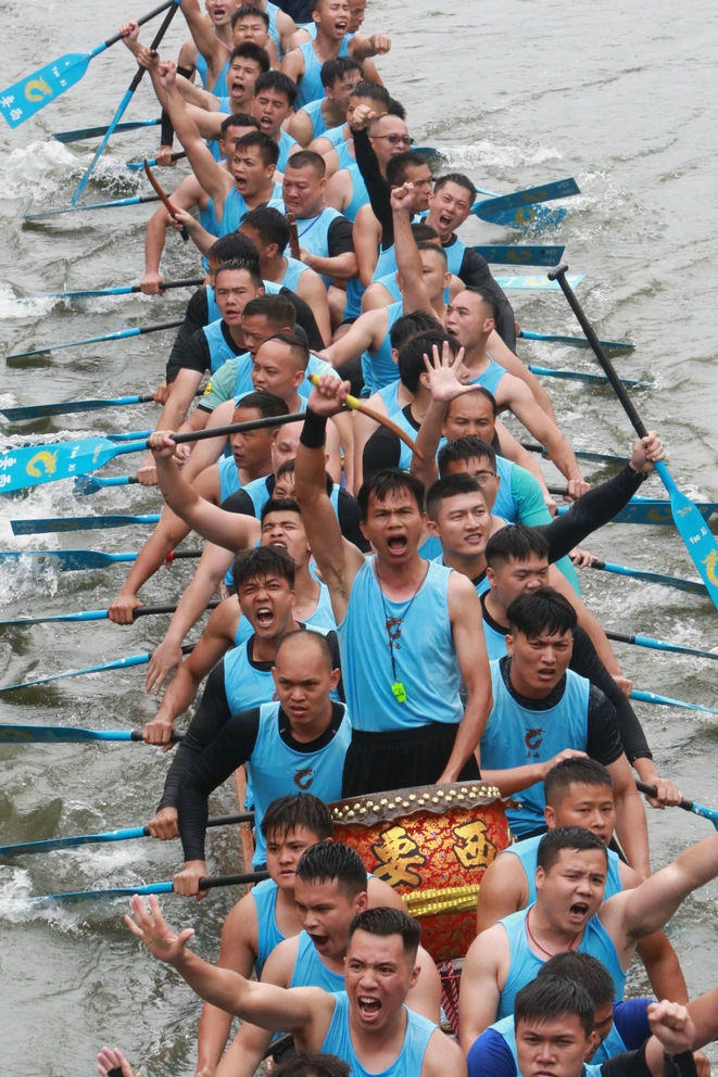 在《广东新语》一书中,有“龙船‘得胜还埠,则广召亲朋燕饮’”的记载,描述的是端午时期赛龙舟及赛后的欢庆场景,激烈的赛事过后,胜出的龙舟队抱着奖品、美酒回到祠堂,与亲朋好友分食,共享胜利的喜悦。