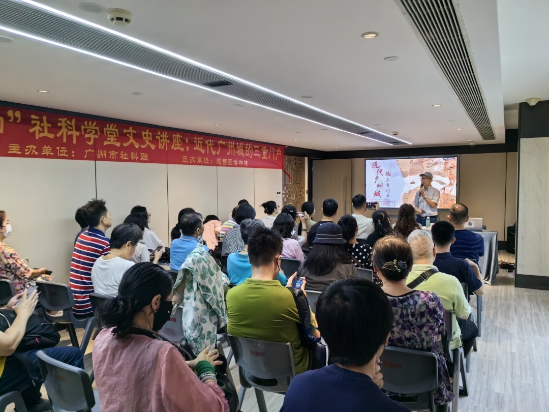 在中国文化和自然遗产日、“我们的节日·端午”到来之际,6月8日上午,由广州市社科联主办、越秀区博物馆承办的“广为人知”社科学堂文史讲座——“近代广州城的三重门户”在南粤先贤馆举行,旨在深入挖掘、生动呈现广州丰富的历史底蕴与文化内涵,彰显“历史文化名城”独特魅力,进一步发挥博物馆在丰富人民精神文化生活以及在坚持道路自信、理论自信、制度自信、文化自信中的阵地作用。