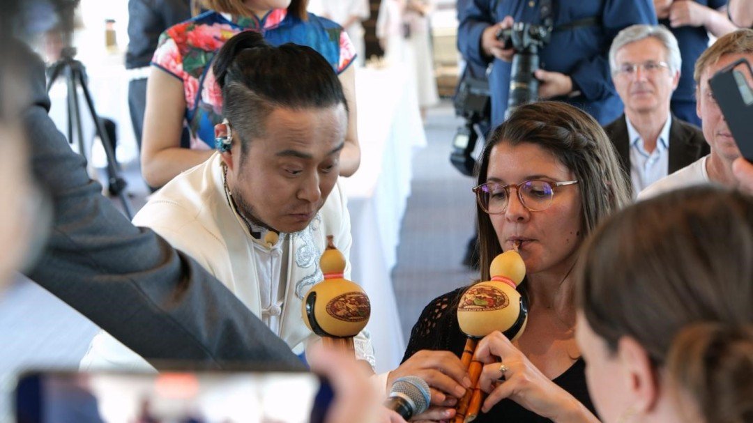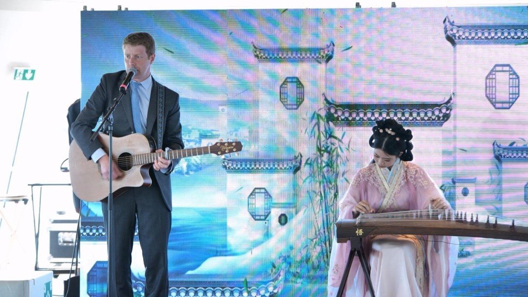 演出现场,旅法二胡音乐家、作曲家果敢,青年旅法古筝演奏家碰碰彭碰彭,以及来自《国乐大典》节目的唢呐乐手张海涛、库布孜乐手阿尔生·巴哈提、唢呐乐手郑方南、琵琶乐手李阳、竹笛乐手李书亭、二胡乐手旺杰、古筝乐手罗嘉豪,通过各具特色的艺术表达,咏诵中法两国的珍贵情谊。