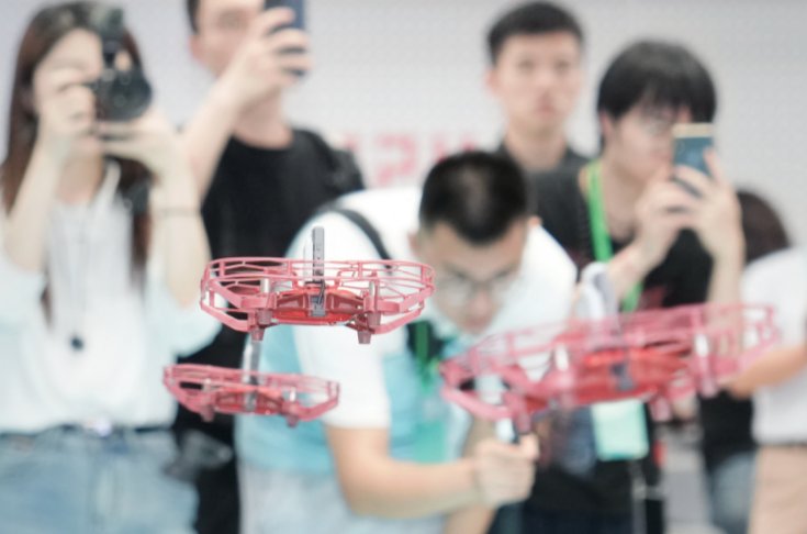 媒体参观采访香港科技大学(广州),在实验室观看无人机展示。