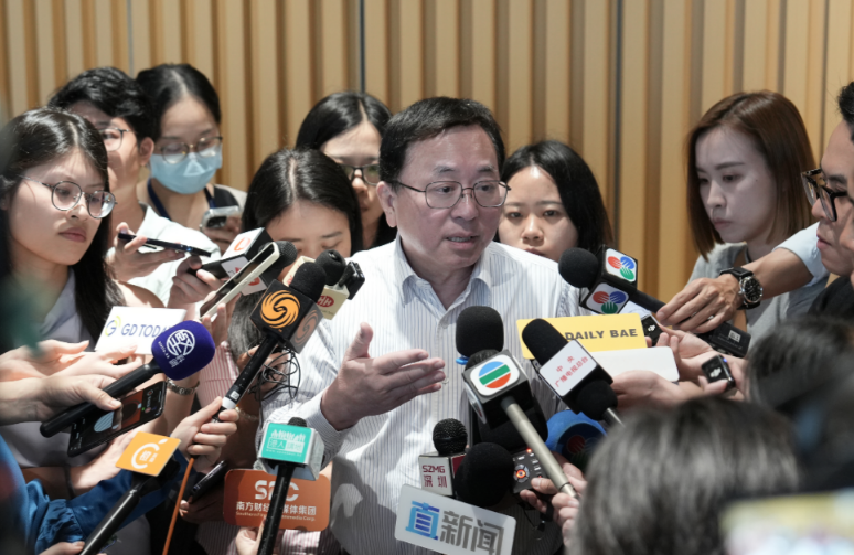 香港科技大学(广州)校长倪明选接受媒体采访。