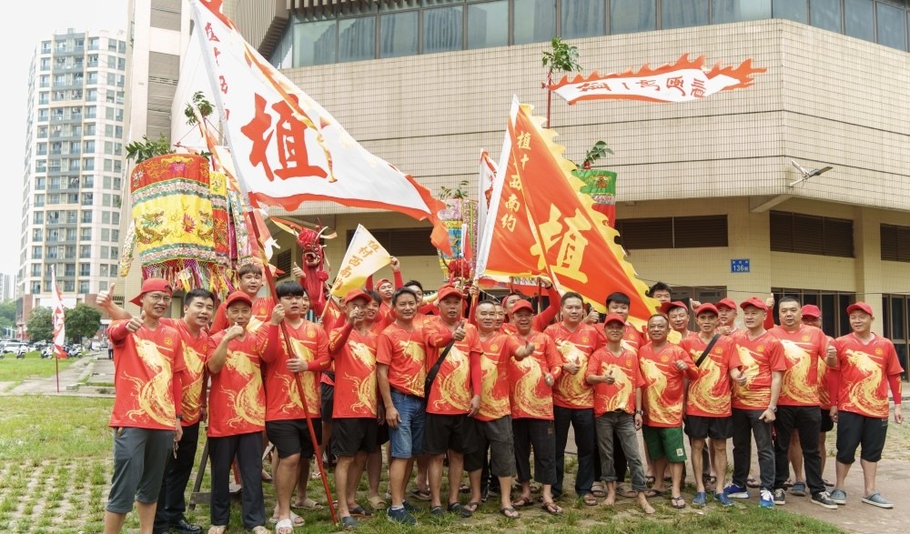 30岁出头的植子健说,他已有20多年的扒龙船经验,在植村同样热爱扒龙船的年轻人还有很多。村民植志烽一家也来到“采青”现场,他与兄弟们忙里忙外准备龙船“采青”仪式,而2岁的儿子则由爷爷奶奶带着看热闹、睇龙船,一家子都是实打实的“龙船粉”。