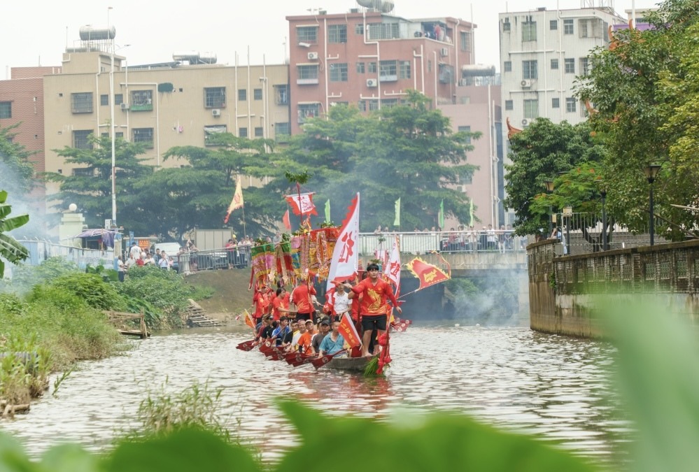 6月2日下午,来自广州亚运城社区的新番禺人组建的龙舟队在砺江河上,与来自大湾区多座城市的20多支龙舟队上演竞速比拼,蔚为壮观。今年端午期间,亚运城社区街坊划龙舟去石楼镇石一村、石二村“探亲”,递回龙船柬,喝龙船茶、吃龙船饼,品尝龙船饭,感受浓浓端午氛围。龙舟这个符号,成为了这座城市人们共同的乡愁,成为新老番禺人的文化纽带。