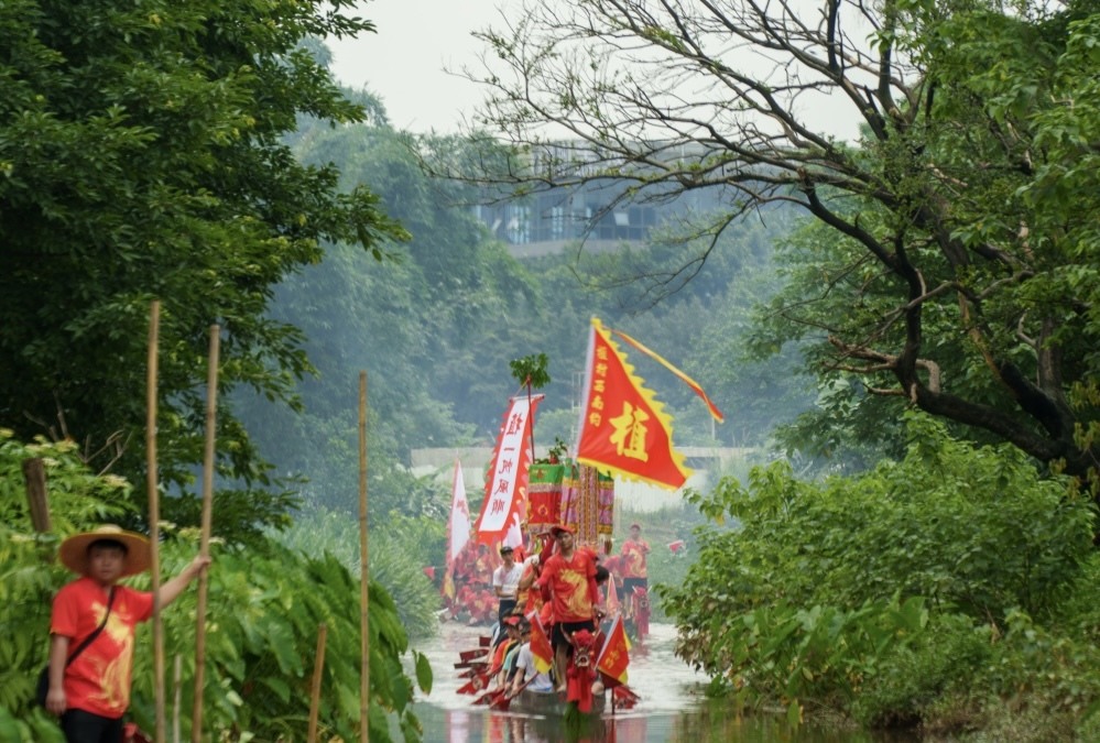 农历五月初一,大石街植村西南约两条龙船的“采青”仪式如期举行。历年来,植村扒龙船都在大山涌东涌段进行。
