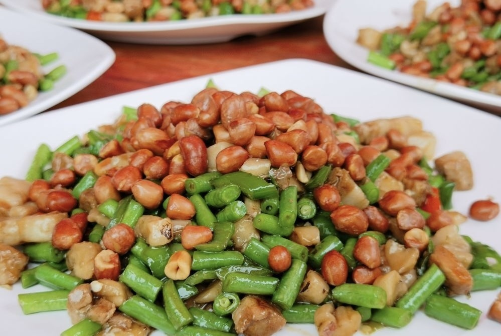 “龙船饭越来越丰盛,不过有一道菜是必不可少——龙船丁,主材料有辣椒、花生、肉、豆角、萝卜脯或头菜。首先要将所有配料切成丁状、粒状,再炒制而成。龙船丁口感丰富,非常好下饭,又有添丁发财、多子多孙、先拔头筹的好意头。今时今日龙船丁的‘丁’料可以变换成白果仁、腰果、鲍鱼等较为高级的食材,但其中的辣椒却是不能更换的,因为‘扒仔’长时间在水上活动,湿气重,而辣椒能驱寒,有祛除湿气的功效!”在植村负责制作龙船饭的厨师如是说。