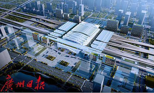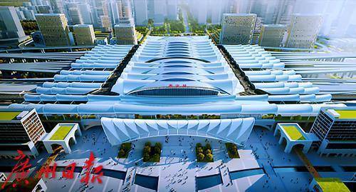 南沙站位于南沙珠江街,总面积达12万平方米,是广州市客运枢纽“五主四辅”重要辅助站。图为南沙站效果图。