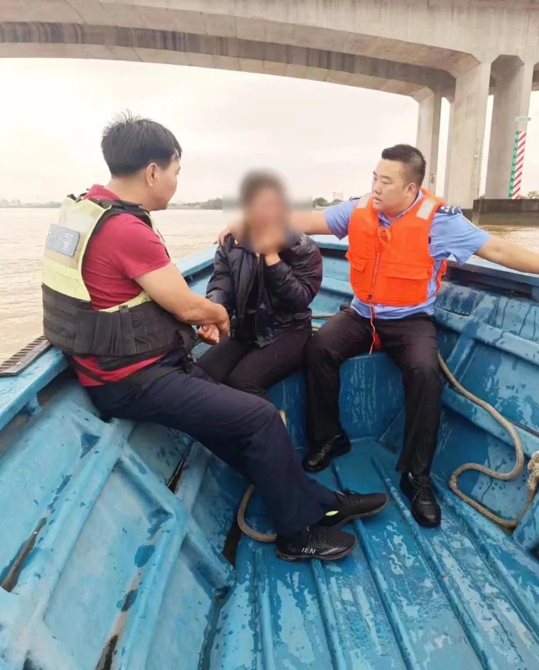 17时左右,水警驾驶着执法艇和单机快艇到达现场。郭警官朝水警队员使了个眼色,双方相互配合,分头行动。郭警官负责吸引女子的注意力,而水警则慢速驾驶着船向女子身后靠近,随时准备救援。