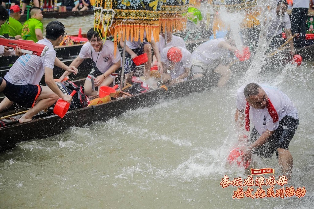 5.洗龙舟水。龙母诞当日,数百艘龙船互泼“龙舟水”,在游龙、赛龙后,村民也会争先恐后地用龙船划过的河水洗手或洗脸,祈求去掉身上的秽气,期盼强体健魄。