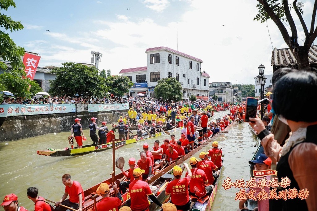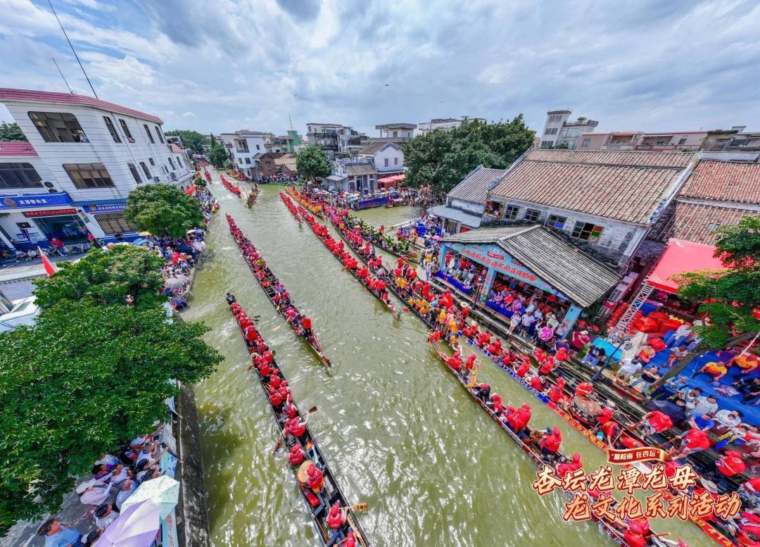 6月13日(农历五月初八),作为“岭南潮 品顺德”2024“顺德欢乐龙舟”文化节端午系列活动的重要活动之一,“最岭南·在杏坛”2024杏坛龙潭龙母诞龙文化系列活动重头戏——百龙闹江在杏坛镇龙潭村盛大开启,128艘龙船齐聚,见证绝无仅有、热闹非凡的“群龙盛会”;古老的龙母庙,传承七百年孝和善的传统文化;万人千席龙舟宴,凝聚水乡悠悠的龙舟情怀和家乡情谊。