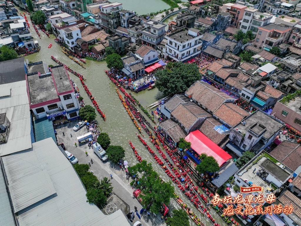 龙潭村作为极具岭南水乡民俗文化特色的古村,每年农历五月初八,均汇聚珠三角各地超百艘龙舟,开展祈福活动,呈现百龙闹江的盛景。