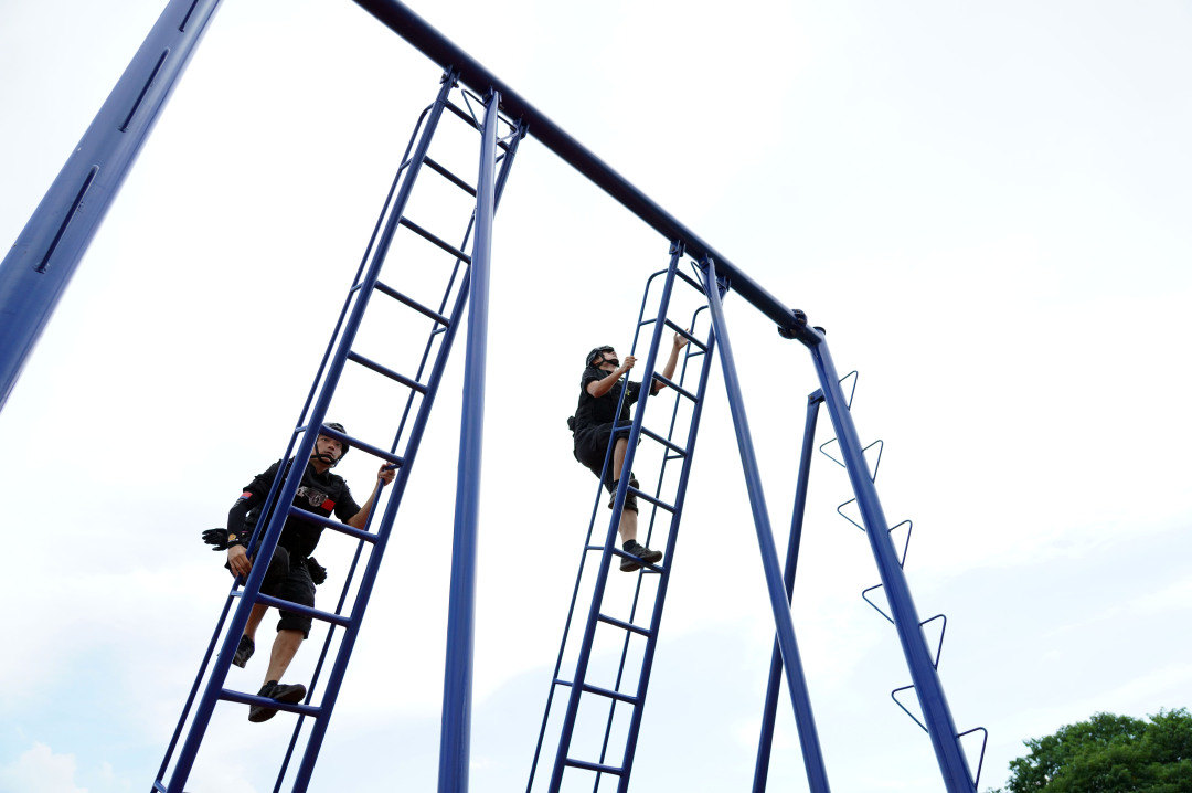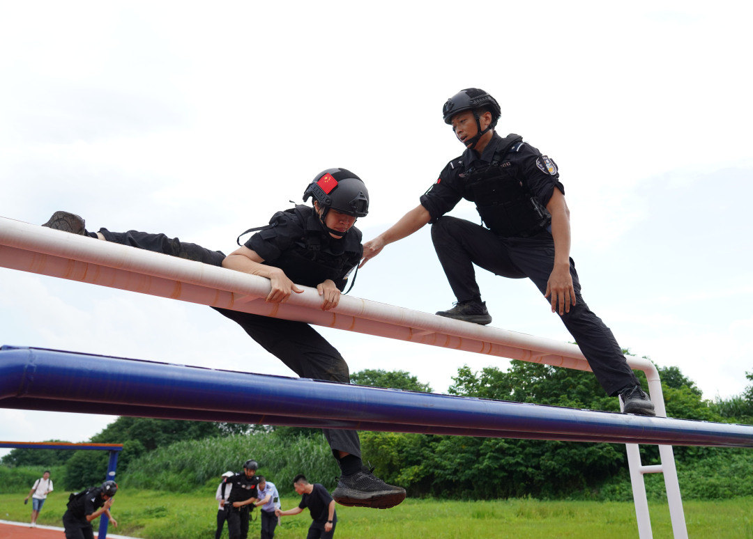 团队越障、攀登索降、破门突入、战术清障、百米狙击……6月13日下午,2024年上半年佛山公安特警实战练兵比武正式展开。全市6支特警队伍共48名特警精英齐聚佛山市公安局反恐训练基地,通过团队配合一气呵成完成11个比武竞赛项目。在高温下完成项目的队员都大汗淋漓、气喘吁吁,堪称极限比拼。