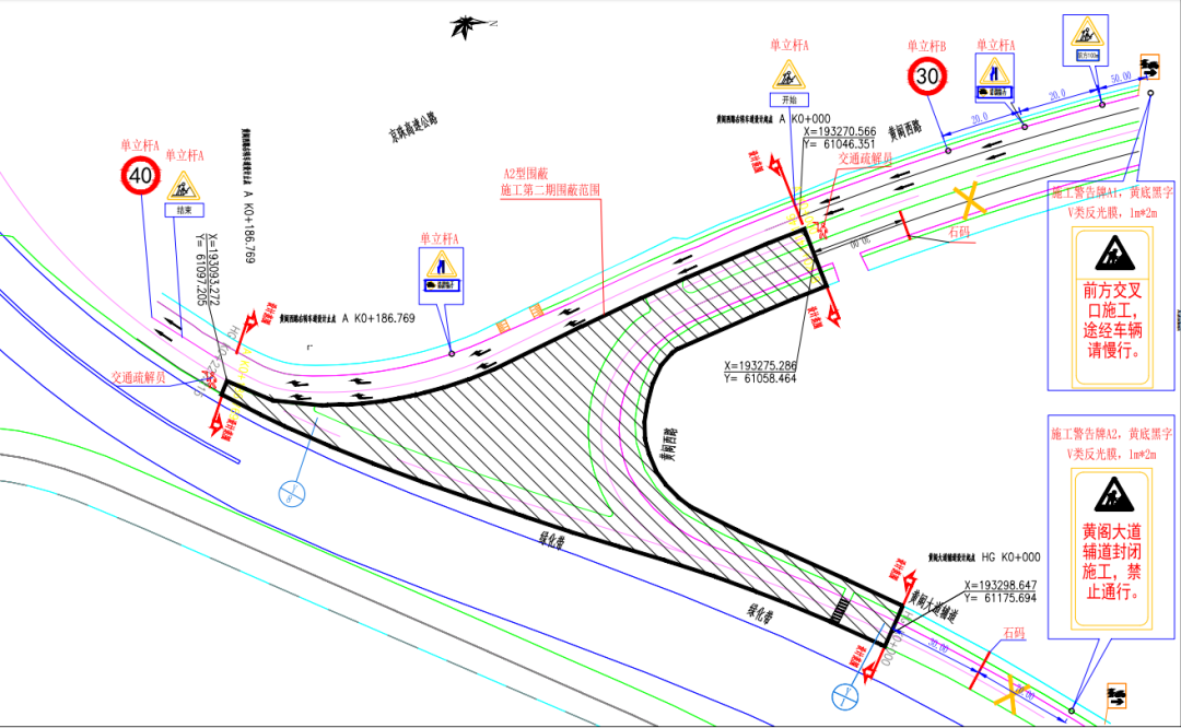 △黄阁西路与黄阁大道交叉路口第一阶段围蔽及车辆通行示意图