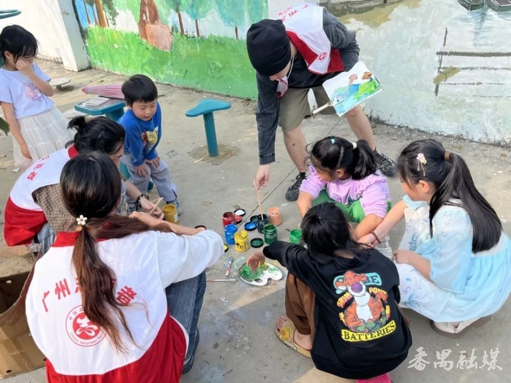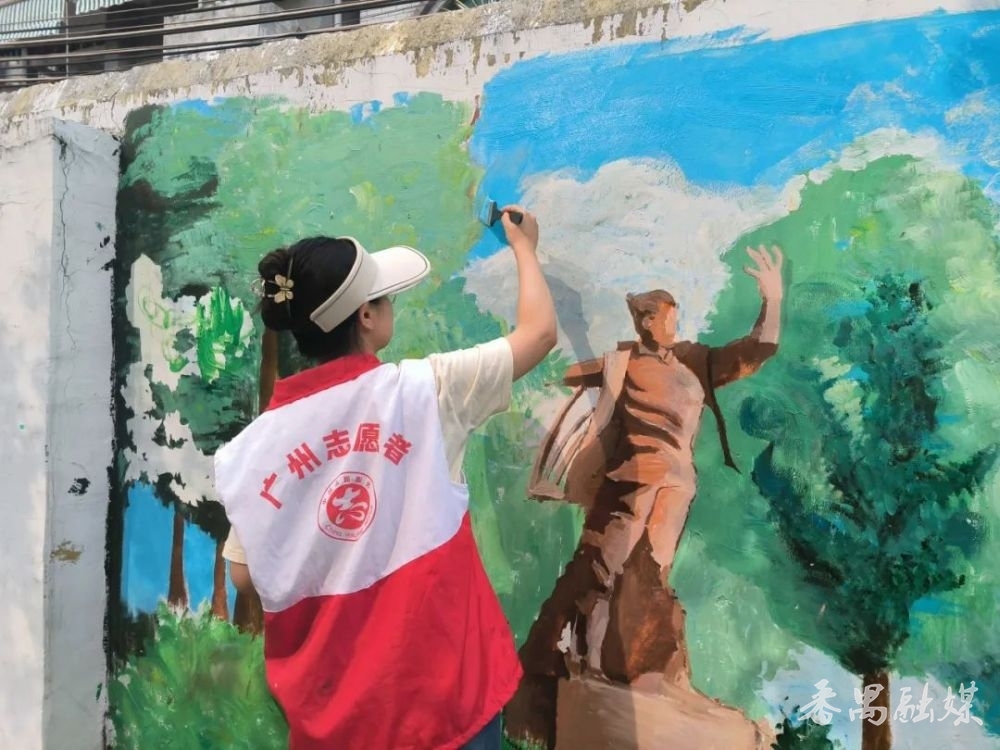 据了解,这些大学生志愿者来自广州美术学院,他们是广州大学城科教文旅服务中心联合广州大学城公益发展促进会招募组建的一支小型墙绘修复志愿服务队伍,利用每周末的时间为小谷围街四条村落的外墙进行修复填色,以艺术赋能,点亮乡村振兴。