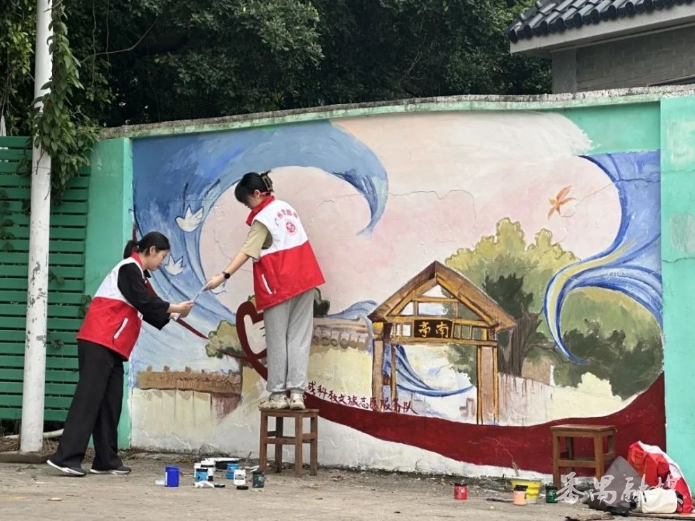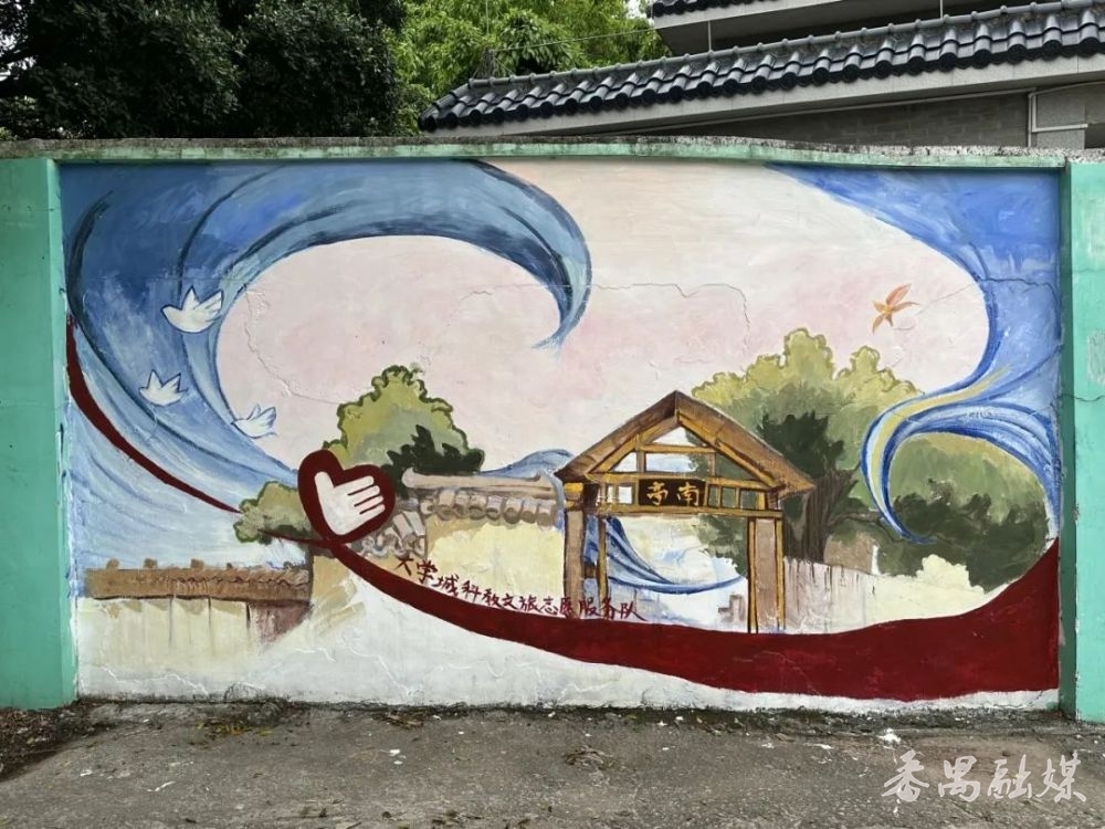 据了解,目前服务队已完成南亭村三个墙绘点的修复。