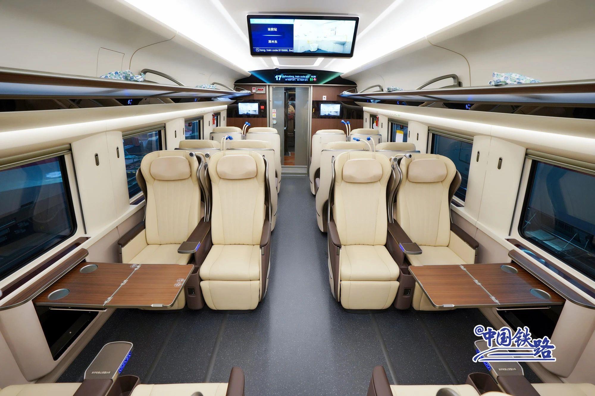 该负责人介绍,为了满足旅客出行多样化需求,根据前期市场调查,将17辆编组列车部分一等座席升级为优选一等座席,优选一等座席设在17号车厢,共24个座席,使用贝壳式电动座椅,靠背和腿部角度可独立调节,配备折叠桌、电源插座、可调节阅读灯等设施,前后排座椅间距进一步拉大,座椅可180度旋转,将为旅客提供更舒适的乘车体验。持优选一等座车票的旅客享受一等座常规服务,还可使用专区进站候车。