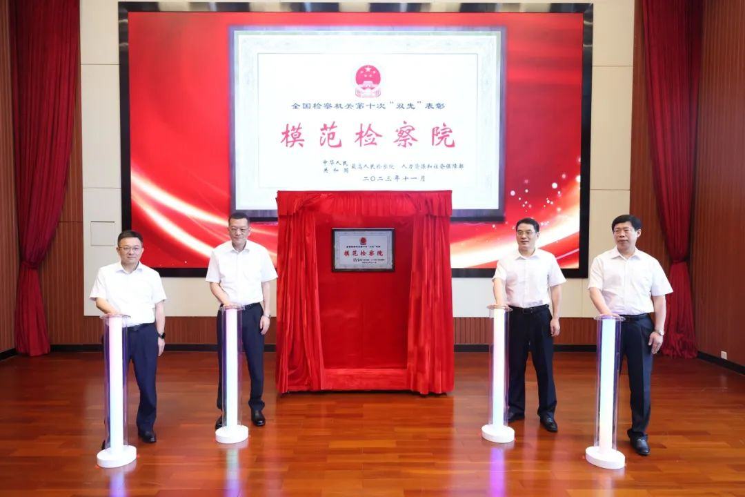 活动现场,冯键、孙太平、刘炜、张健等共同为南沙区检察院“全国模范检察院”牌匾揭牌。