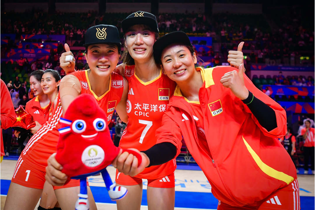 世界女排联赛中国香港站比赛今晚继续在香港体育馆举行。中国女排以25比19、25比17和25比18击败德国女排,收获本站两连胜。赛后,国际排联颁出巴黎奥运会吉祥物以及帽子,官宣中国女排正式获得巴黎奥运会参赛资格。