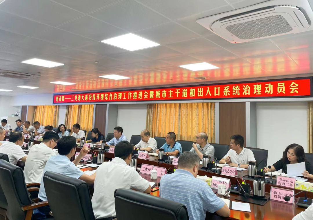 现场检查结束,佛山市城市主干道和出入口系统治理动员会在石湾镇街道举行。会上,禅城、南海、顺德三区城管执法局首先介绍了沿线环境治理成效,并分享了经验做法。