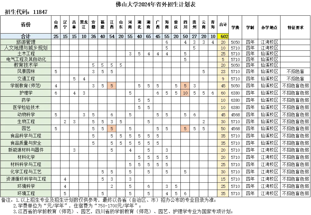 6月14日,佛山大学2024年本科招生计划公布。今年该校本科招生总计划数为5040人(含预留计划),其中广东省招生计划数为4388人,外省招生计划数为602人,另有预留计划50人。