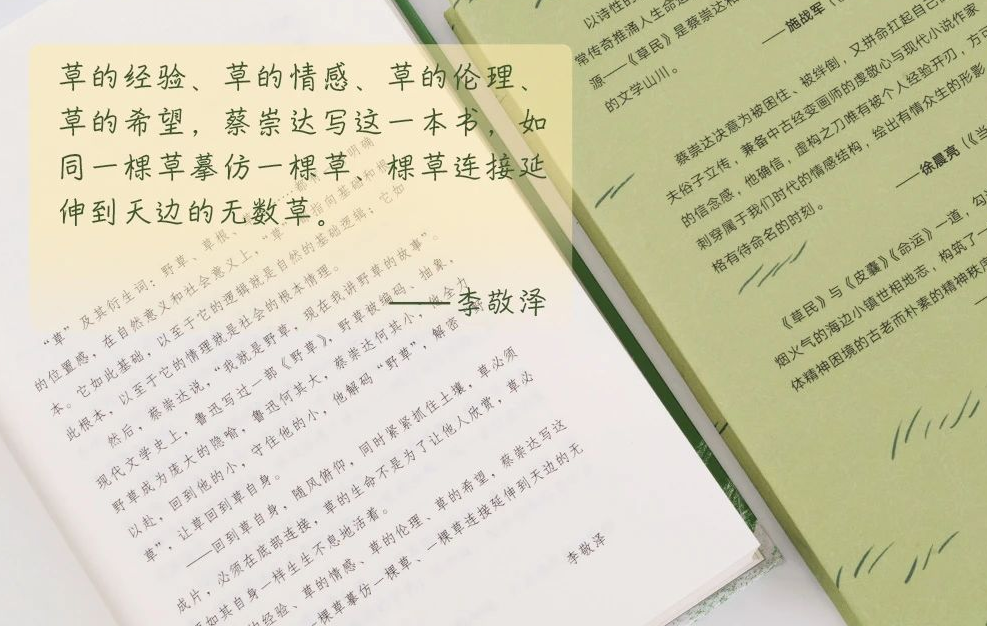 不同于刻骨铭心的散文集《皮囊》、催人泪下的长篇小说《命运》,《草民》以贴近大地的笔触,深情回望那片滋养心灵的故土。作品围绕着福建泉州沿海小镇东石镇徐徐展开,讲述“东石镇宇宙”中一群人生老病死的故事。书中通过七个神性与人性交织的玄妙故事,将焦点投向了那些如野草般坚韧、充满生命力的普通人,写的是东石镇上的故事,却能让读者从中看见自己的故乡,在“东石镇宇宙”里找到自己的影子,引发情感共鸣,在喧嚣的世界中给读者带来内心的安宁与慰藉。