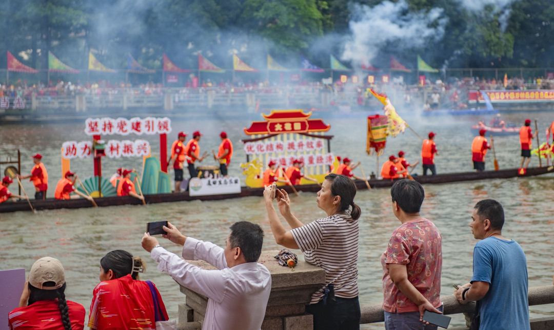 据了解,花地河是荔湾芳村的母亲河,属珠江航道支流,连接广佛水道,沿途村落多为历史悠久的岭南水乡。现场,年过七旬的东漖联社老社长老郭永卓介绍,以前,芳村除花地、冲口、鹤洞、石围塘之外,其他区域都属原东漖镇范围,镇内龙舟村众多。20世纪80年代,每逢端午,原东漖镇会在花地河举办龙船景。“农历五月初四这一天,葵蓬、茶滘、坑口、大花园、泮塘等好多条村的龙舟前来趁景,30多条龙船在花地河上竞速夺标,比过年还热闹。”他说,遗憾的是大概在1995年左右,东漖景就再也没有举办过。