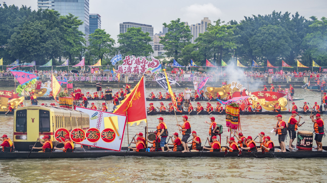 此次荔湾区在花地河上复办东漖龙船景,将龙船盛景与乡村振兴、城市发展同频共举,在传承传统文化同时,加入新时代元素,展示荔湾新活力新风貌。