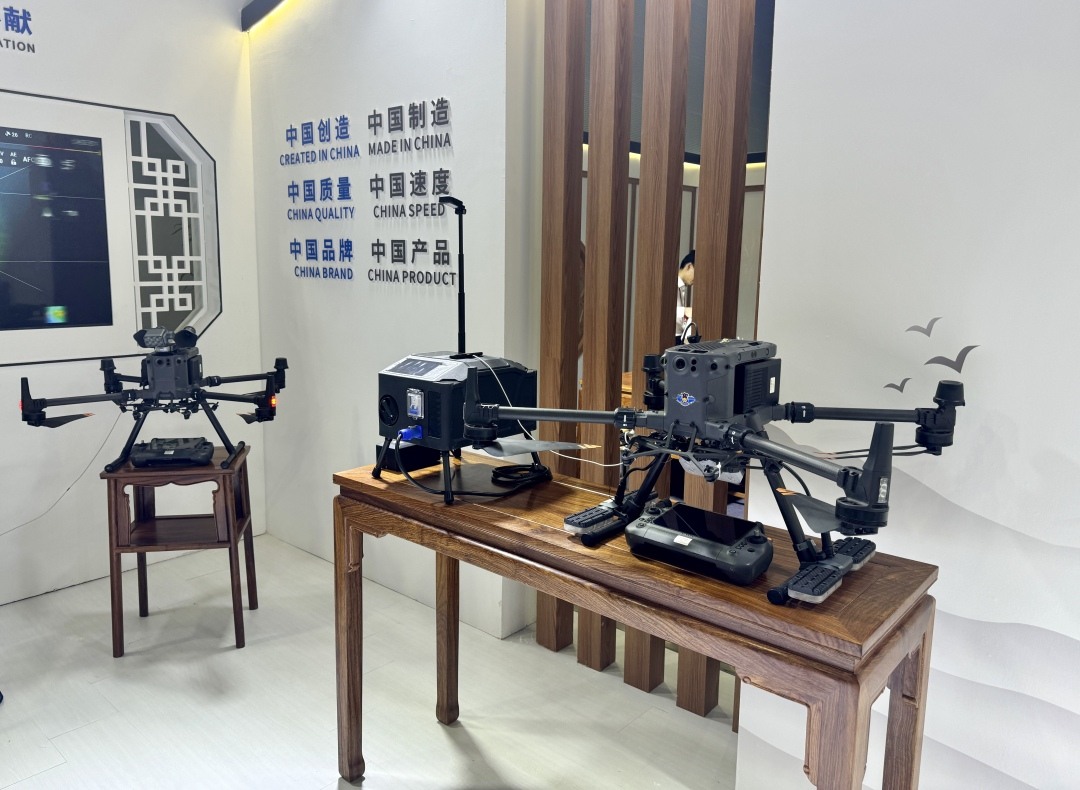 无人机在执行特定飞行任务时,需要装载特定任务的仪器、设备和系统,称为无人机的任务载荷。无人机数字语音广播系统、无人机矩阵照明灯、无人机可变焦云台灯……在成至智能机器科技有限公司展区内,一台台无人机任务载荷格外引人注目。